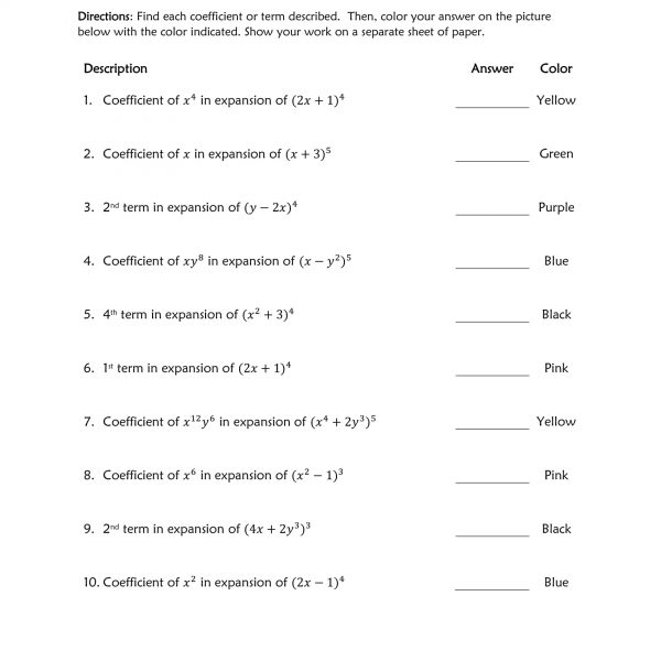 Overview With this activity, students will expand binomials using the binomial theorem.  As they work through the exercises, they will