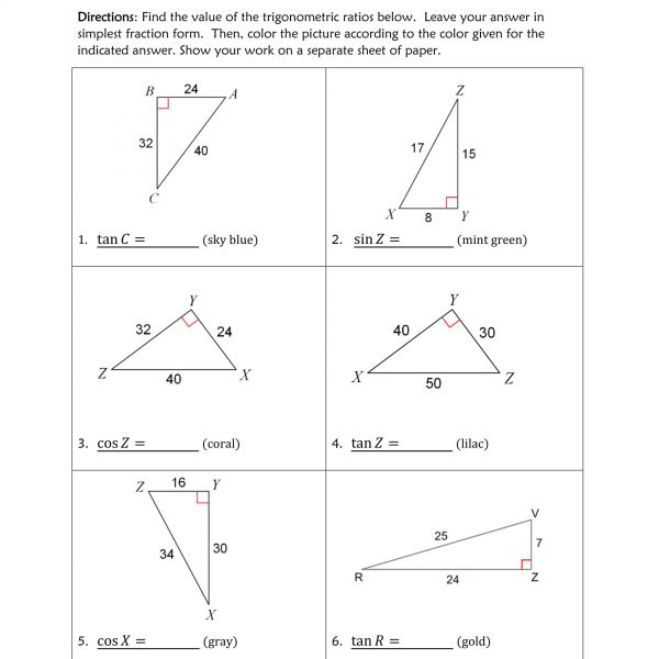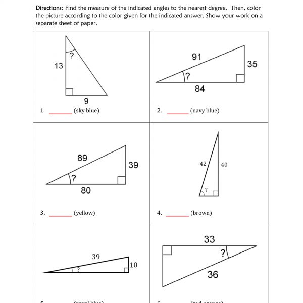 Overview With this activity, students will find measures of indicated angles using inverse trig ratios.  They will use their answers