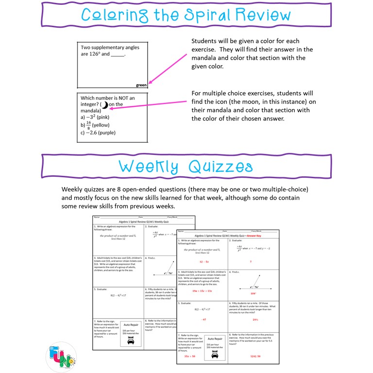 Note: Only 8 weeks of spiral review are included in the 1st quarter. This is because many administrative tasks take place during the first week of school, such as the welcoming back of students and pre-placement testing.