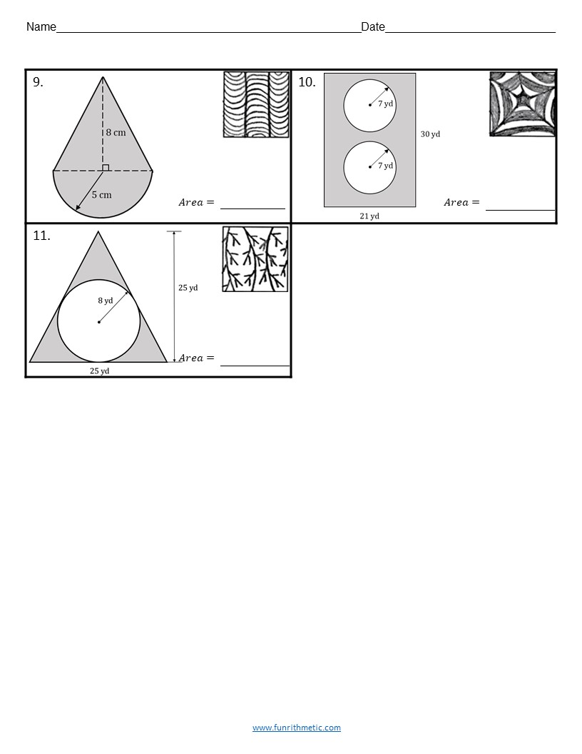 With this no-prep activity, students will find the area of various compound shapes (using addition and subtraction methods). Then, they will find their answer on the abstract picture and fill in the space with a given pattern to reveal a beautiful, fun Zen design! Students can color their final products or leave them in black and white. Either way, your classroom will be decorated with beautiful artwork as the students practice their geometry skills!