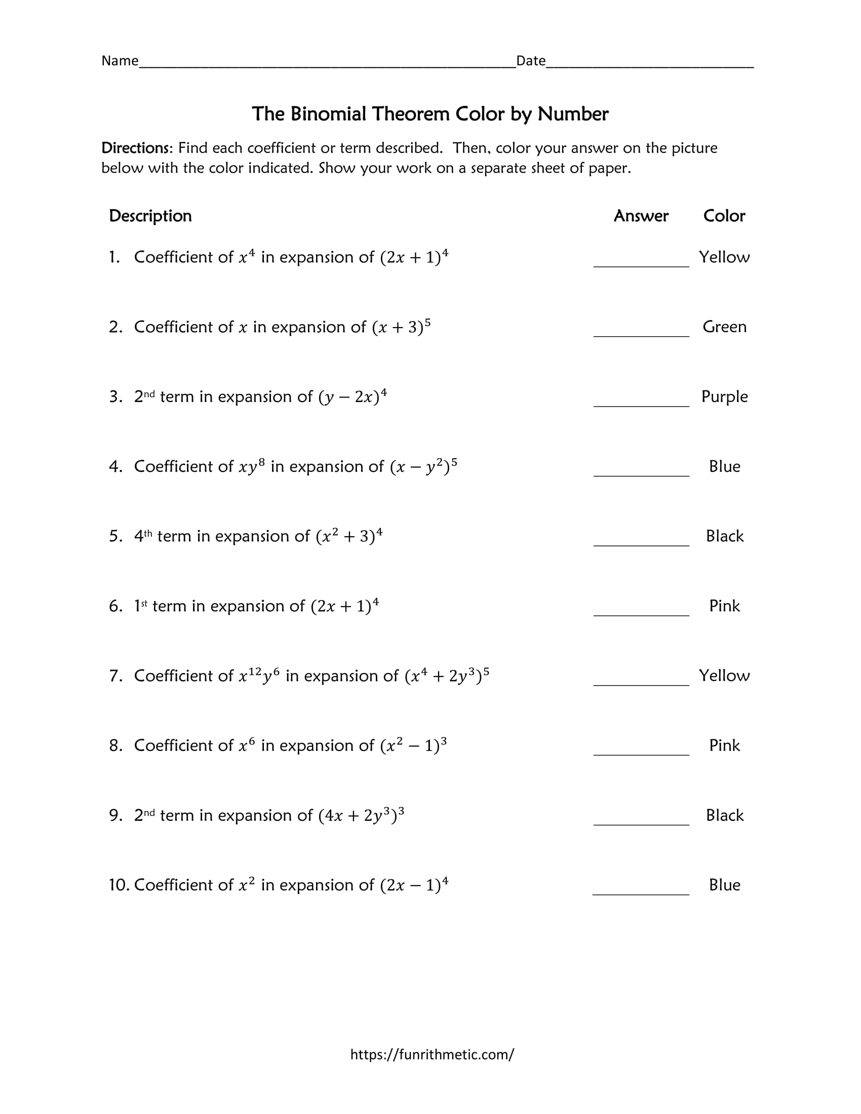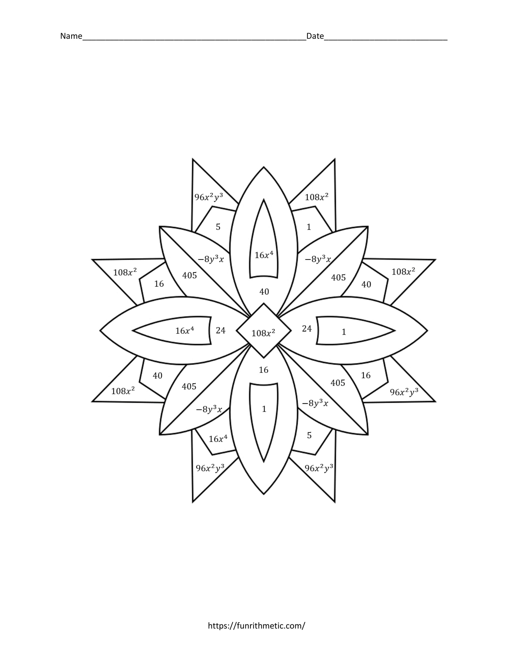 With this activity, students will expand binomials using the binomial theorem. As they work through the exercises, they will color and reveal a beautiful mandala! Students will be engaged and on-task, and the final pieces make excellent classroom decoration!