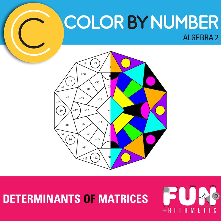 With this activity, students will evaluate the determinants of 2×2 and 3×3 matrices and then color the picture using their answers and the indicated color to reveal a beautiful, colorful mandala! As an added bonus, the final products make fabulous classroom decor!