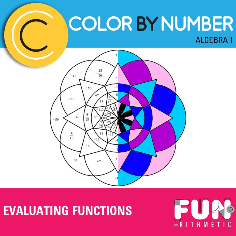 With this activity, students will practice evaluating functions. After they obtain the solution, they will color the mandala according to the color indicated for that solution to reveal a beautiful, colorful pattern! As an added bonus, the final product makes fabulous classroom decor!