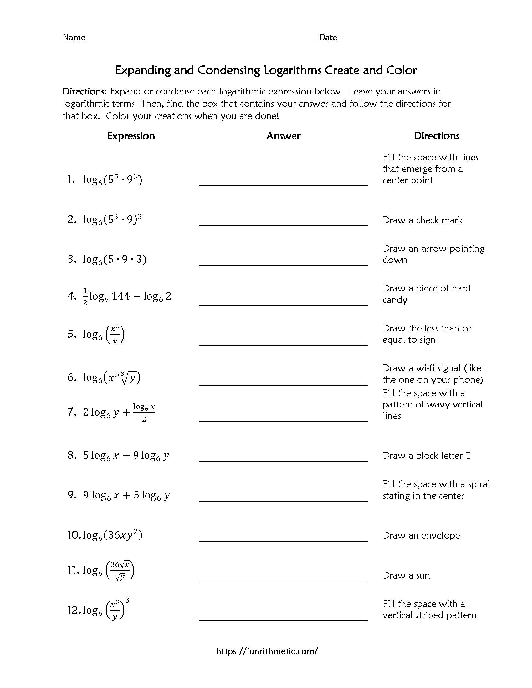 HomeAlgebra 2 Expanding & Condensing Logarithms Create and Color