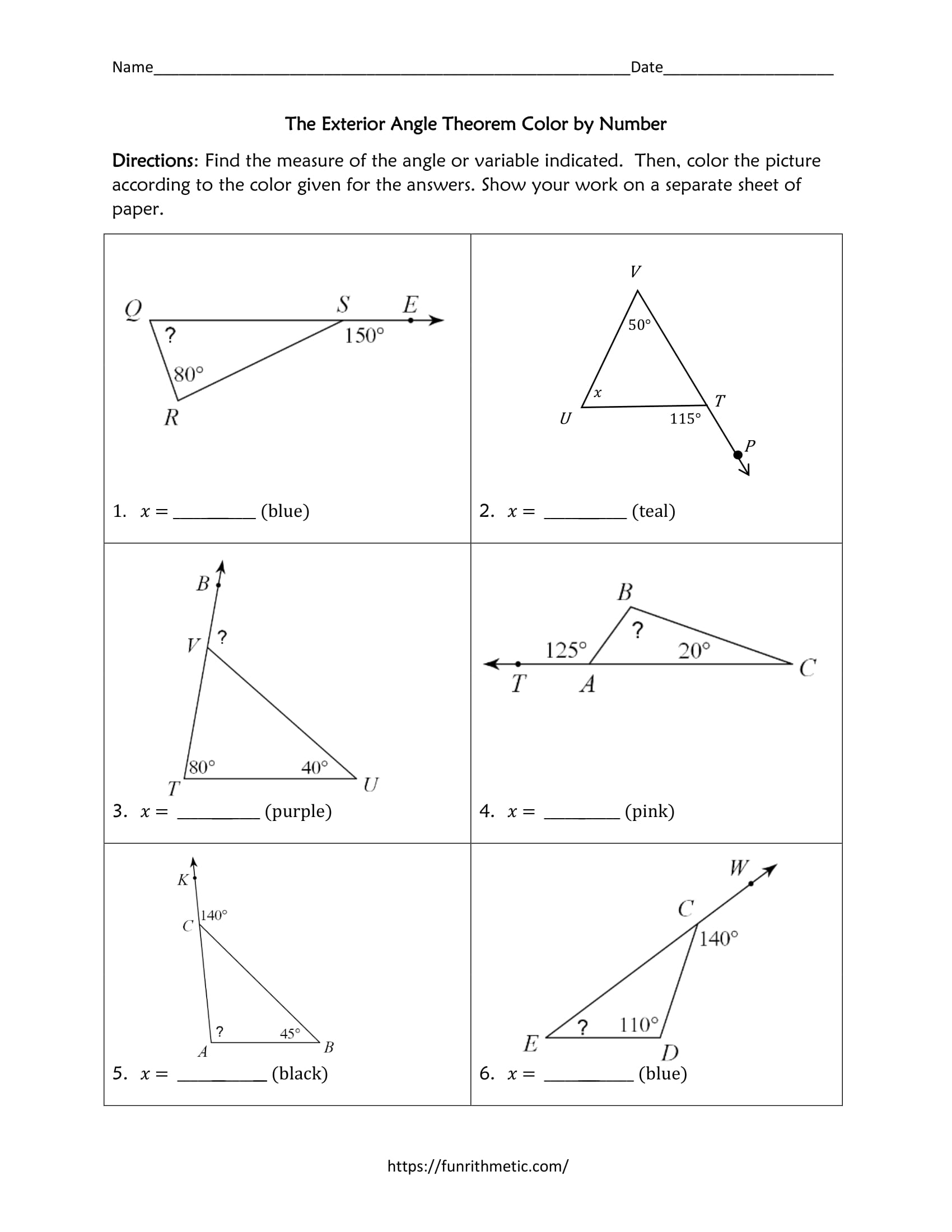 HomeColoring Activities Exterior Angle Theorem Color by Number