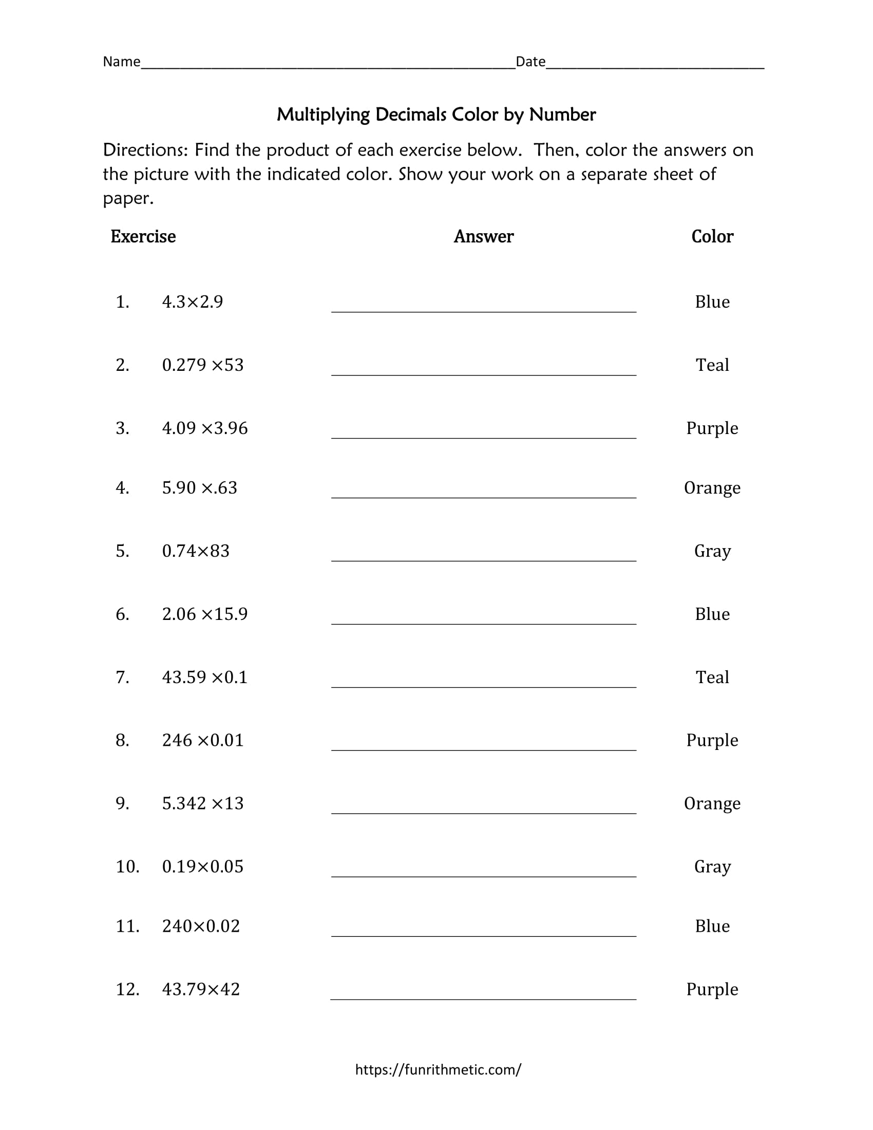 Overview In this dividing decimals worksheet, students will color as they have fun practicing their skills!  As they work through