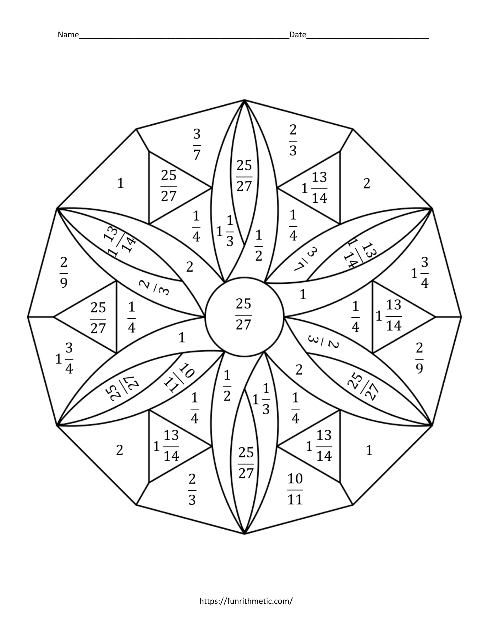 In this activity, students will practice multiplying fractions (proper and improper with some cross cancellation) as they color! Once they put their answers in simplest form, they color the part of the picture with their answer according to the indicated color to reveal a beautiful, colorful mandala. Not only is coloring a great way to motivate students, but the final products also make fabulous classroom decor!