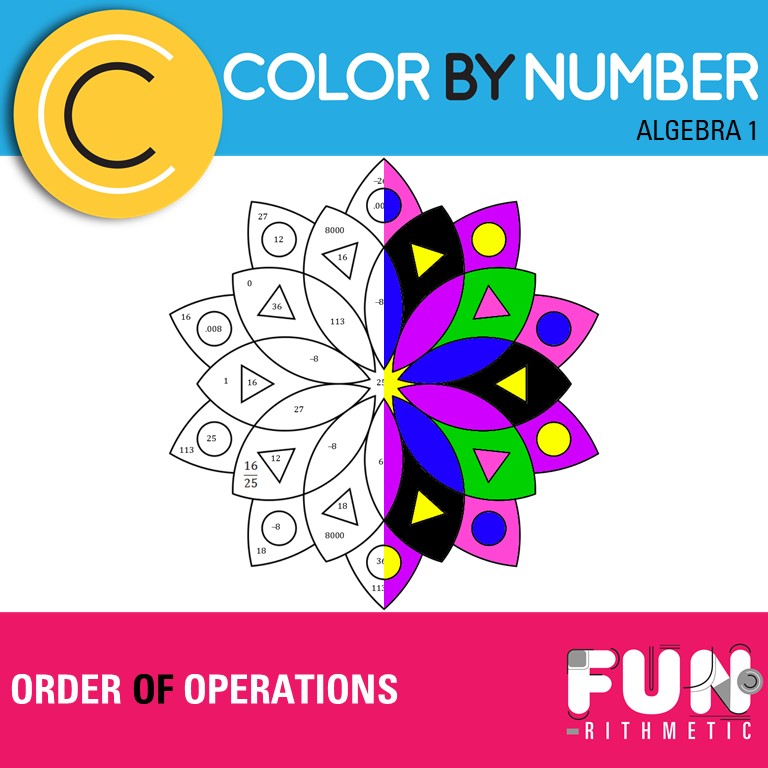 With this activity, students will practice simplifying expressions using the order of operations. After they obtain the solution, they will color the mandala according to the color indicated for that solution. As an added bonus, the final product makes fabulous classroom decor!